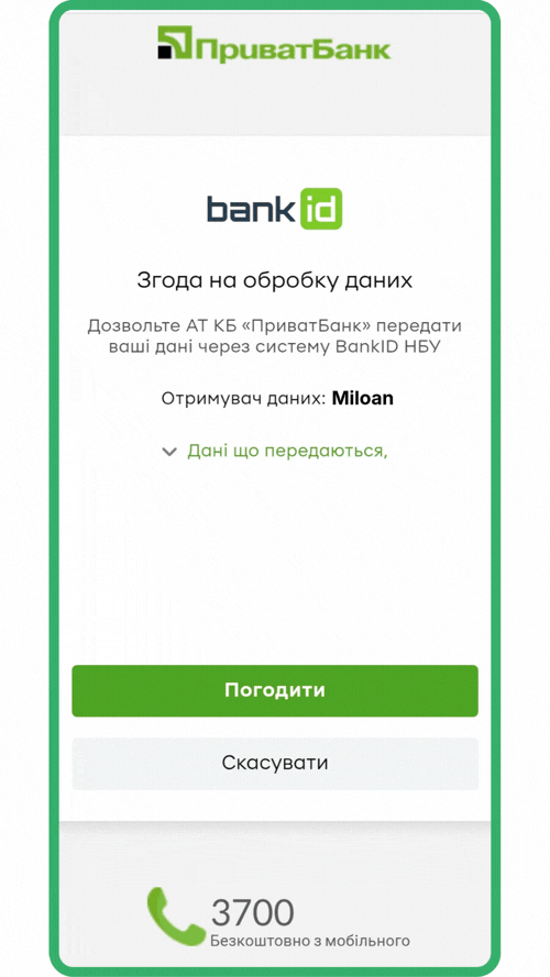 Як авторизуватися за допомогою BankID на Miloan